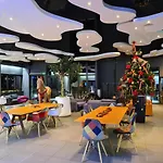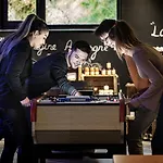 O bar deste hotel de Chambon-sur-Lac tem futebol de mesa e bilhar.